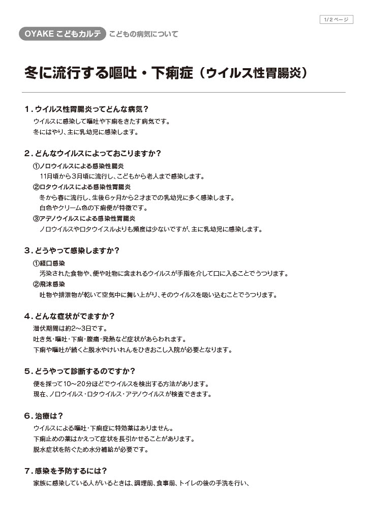 冬に流行する嘔吐・下痢症(ウイルス性胃腸炎)