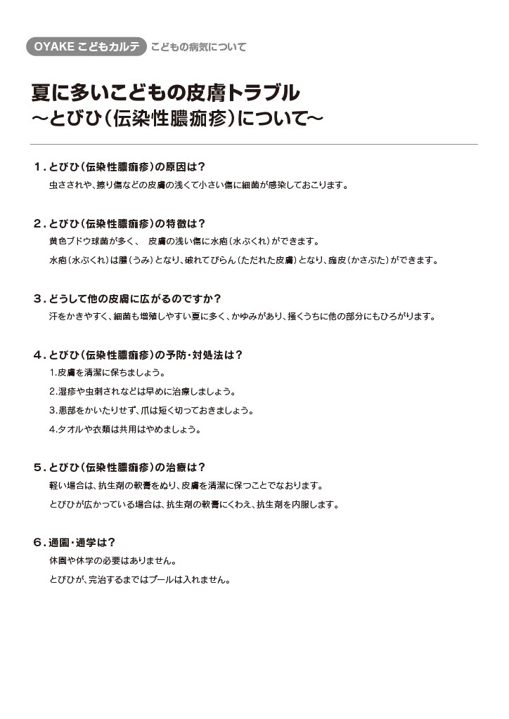 夏に多いこどもの皮膚トラブル ~とびひ(伝染性膿痂疹)について~