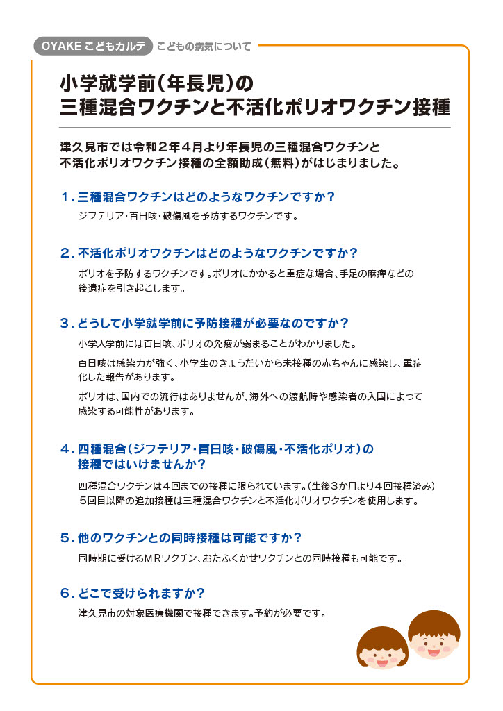 小学就学前(年長児)の三種混合ワクチンと不活化ポリオワクチン接種」を掲載しています。
