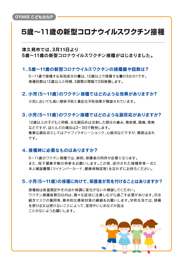 5歳~11歳の新型コロナウイルスワクチン接種について掲載しております。
