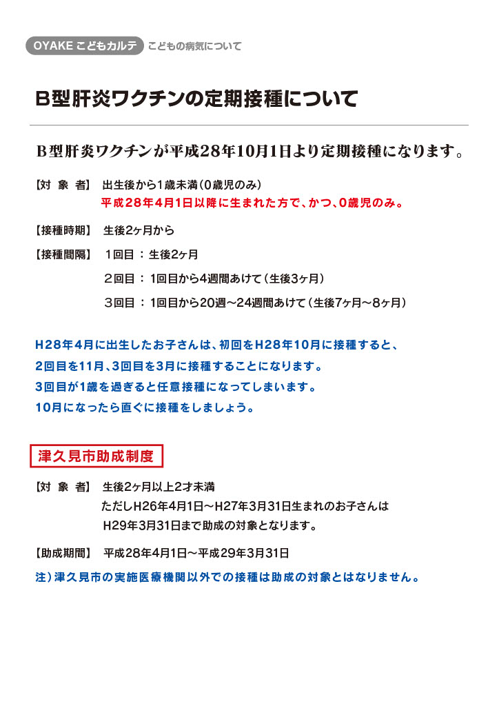 B型肝炎ワクチンの定期接種について